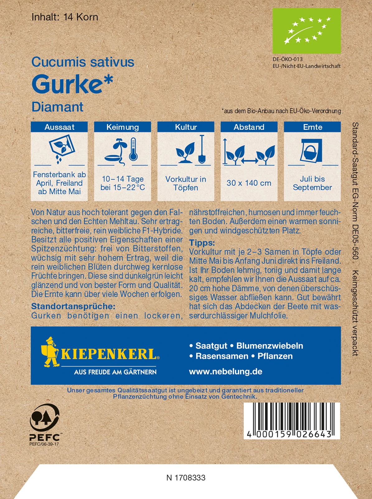 BIO Freilandgurke Sonja | Freilandgurkensamen Von Samen Pfann
