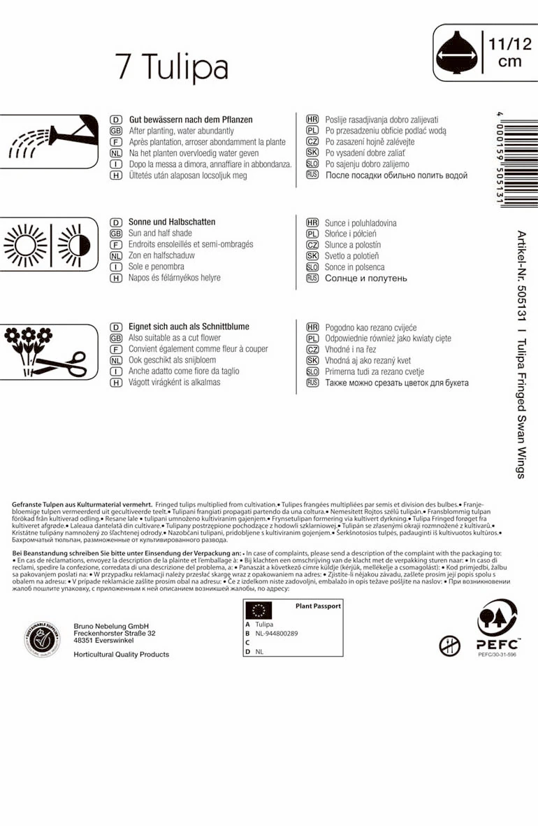 Die gefranste Tulpe ‚Swan Wings‘ öffnet ihre weißen Blüten im Mai. Ihrem Namen entsprechend erinnern sie dabei an den eleganten Flügelschlag eines Schwans. Mit ihrer Wuchshöhe von etwa 45 cm eignet sich ‚Swan Wings‘ neben wunderschöner Bereicherung des Blumenbeets auch als Schnittblume. Die mehrjährige Tulpe erfreut Sie Jahr um Jahr mit ihrer Blütenpracht.