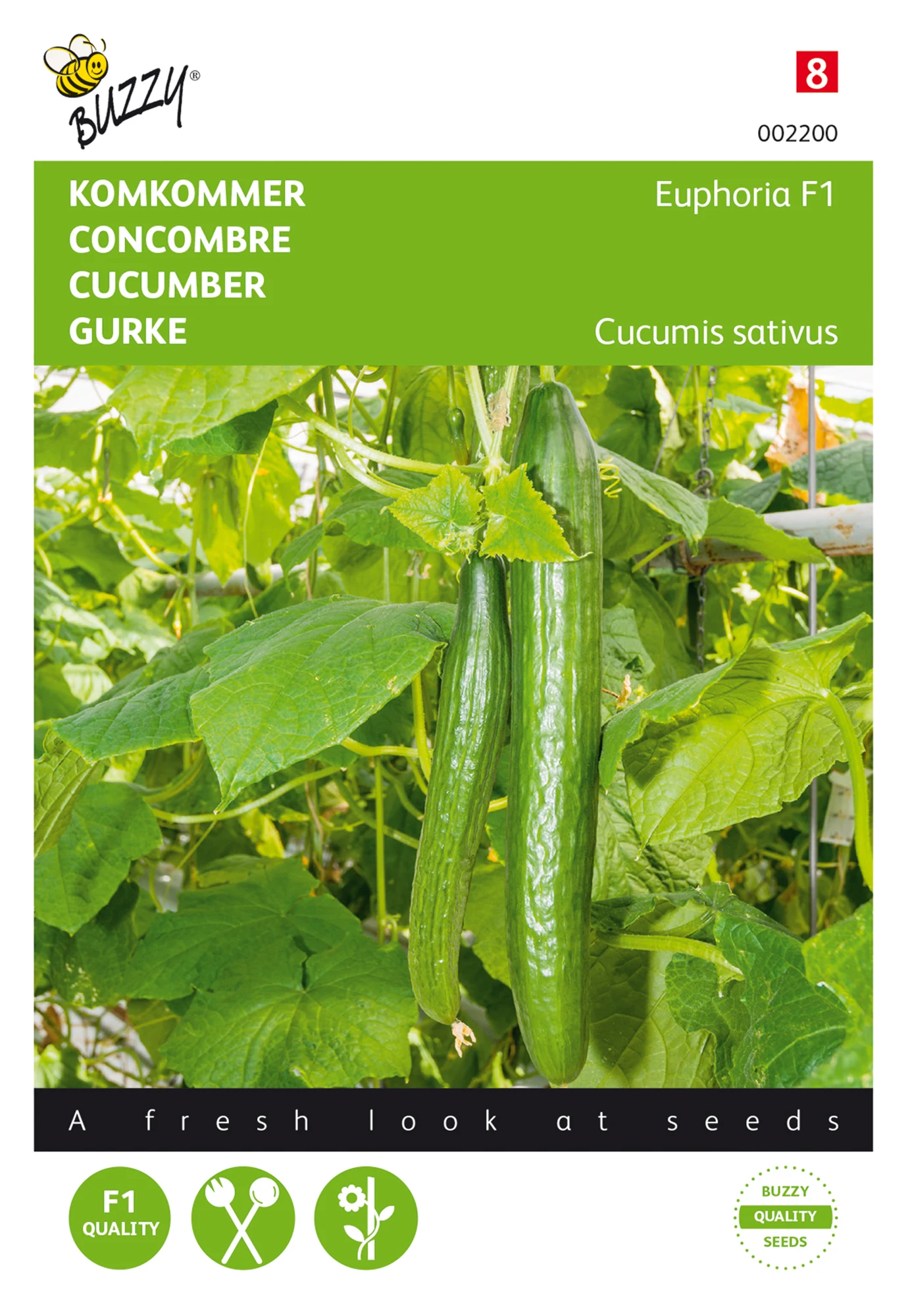 März bis Juni in Töpfe bei ca. 22°C aussäen. Nach ca. 4 Wochen ins Gewächshaus verpflanzen. Schnellwüchsige, sehr ertragreiche Hybridpflanze mit langen dunkelgrünen Früchten. benötigt humusreichen Boden.