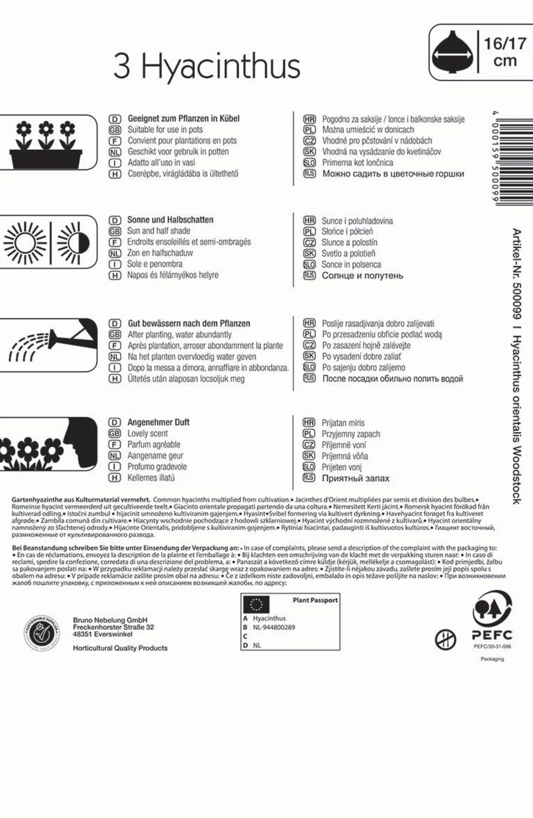 Nach langen grauen Winterwochen setzt die purpurrote Profi-Line Hyazinthe ‚Woodstock‘ Akzente in Ihrem Garten. Oder wenn Sie möchten auch auf Ihrem Balkon, denn mit einer Wuchshöhe von 25 cm eignet sie sich bestens für eine Kübelpflanzung. Besonders schön sieht sie in Verbindung mit immergrünen Gehölzen aus. Die Profi-Line Hyazinthe ‚Woodstock‘ kommt mit einem passenden Stecketikett zu Ihnen und duftet herrlich.