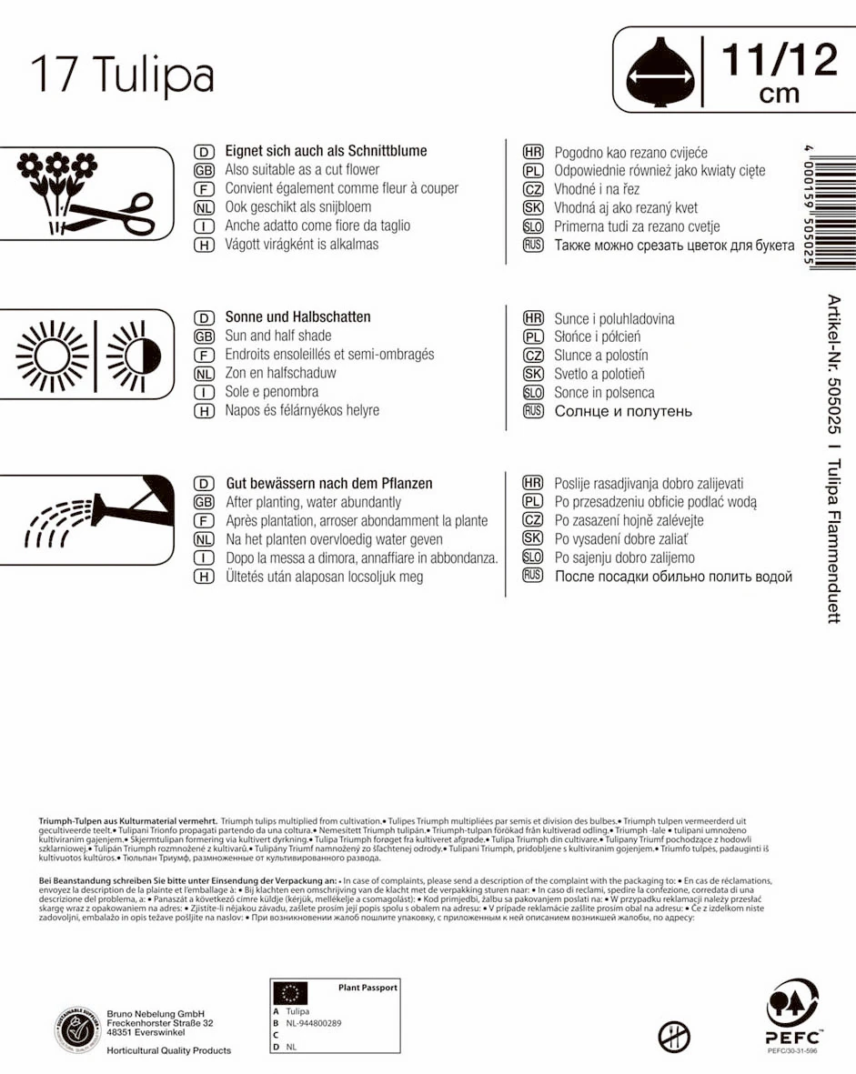 Der Mega-Pack „Flammenduett Triumphtulpe“ enthält eine starke Mischung zweier Triumphtulpen. Die wunderschönen großen Blumen leuchten im April entweder gelb oder rot-gelb gerändert. Das schöne Farbenspiel erinnert an entflammende Leidenschaft. Mit ihrer Höhe von 40 cm sind die Blumen sowohl für das Beet wie auch für den Schnitt geeignet.