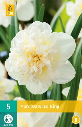 Ice King ist eine wunderschöne doppelblütige Narzisse. Die Blume ist zart gelb mit weiß. Es ist eine sehr geeignete Narzisse zum Einbürgern. Ice King ist ein Hingucker im Beet, aber auch schön in Töpfen auf der Terrasse oder dem Balkon. Schön zu kombinieren mit Muscari, Hyazinthen und Tulpen.