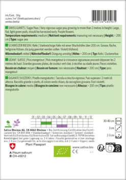Zuckererbse Schweizer Riesen | BIO Zuckererbsensamen Von Sativa Rheinau
