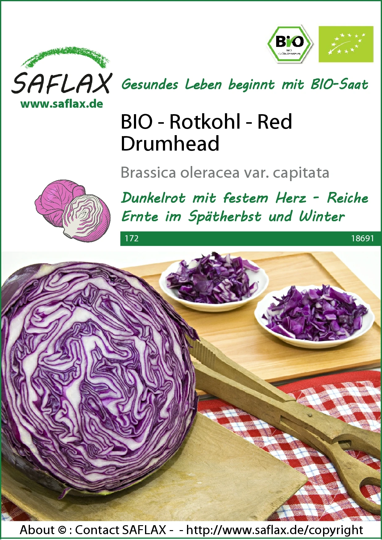 Wenn Sie den Rotkohl nicht frisch verbrauchen, sollten Sie ihn bis zu den ersten Nachtfrösten im Freiland lassen, da er sich dort besser hält.Für eine längere Haltbarkeit bietet sich zudem das Einkochen an. Entfernen Sie immer die Strünke und die derben Außenblätter, denn dort ist der Nitratgehalt sehr hoch. Rotkohl färbt beim Schneiden kräftig ab, so dass sich das Arbeiten mit Handschuhen empfiehlt. Für Rohkostsalate ist Rotkohl sehr gut geeignet. Besonders lecker schmeckt er mit einer Marinade aus Zitronensaft, Honig, Pflanzenöl und Salz sowie einigen Apfel- oder Orangenstückchen. Für ein klassisches Rotkohlgemüse dünsten Sie fein geschnittenen Kohl zusammen mit Apfel und Nelke. Das passt besonders gut zu Ente, Gans und rotem Fleisch.