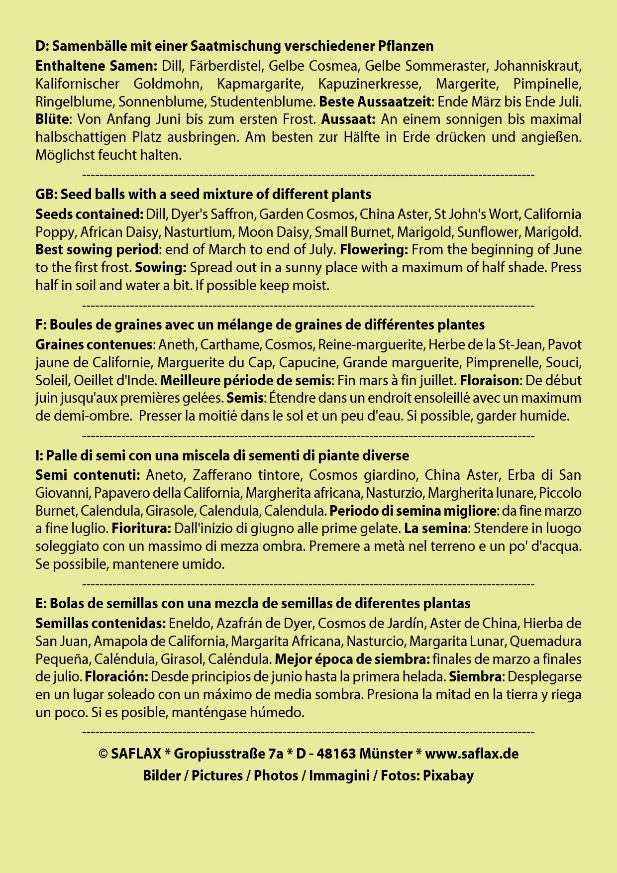 Samenbälle Sonnenschein (3 Stück) | Blumensamenmischung Von Saflax