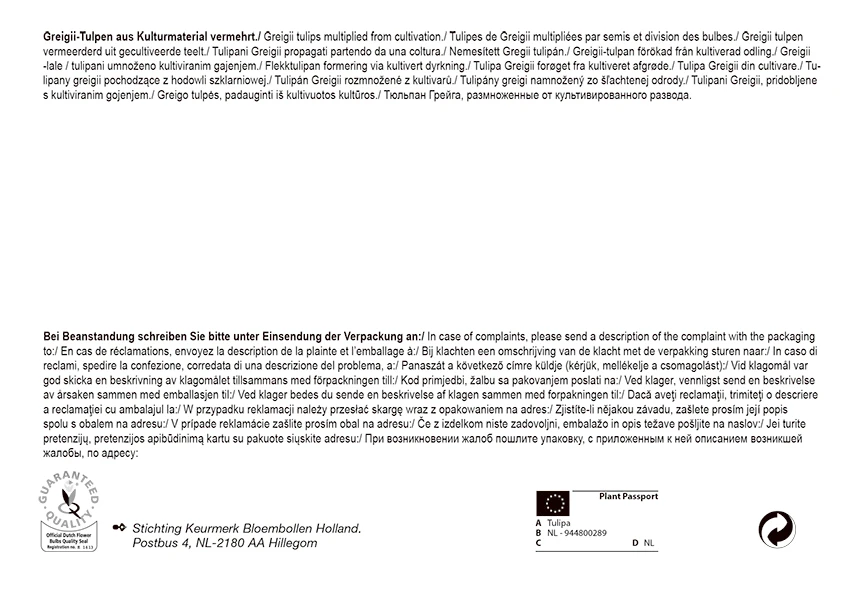 Blumenzwiebel des Jahres 2007. Bewährte, blühfreudige Sorte in Karminrot. Eine Tulpe mit Tradition für Tulpenliebhaber. Falls Sie Ihre Blumenzwiebeln in Kübeln oder anderen Gefäßen pflanzen, dann sollten Sie folgendes beachten. Nach dem Setzen der Zwiebeln das Pflanzgefäß gut angießen und geschützt an der Hauswand, in der kalten Garage o.ä. oder unter Sträuchern im Garten überwintern. Die Zwiebeln benötigen zwingend eine Kühlphase, um blühfähige Blüten zu entwickeln. Nur bei Frösten unter – 10° C sollte zusätzlicher Winterschutz gegeben werden. Ab Mitte – Ende März die Gefäße aus dem Winterquartier holen und ins volle Licht stellen.