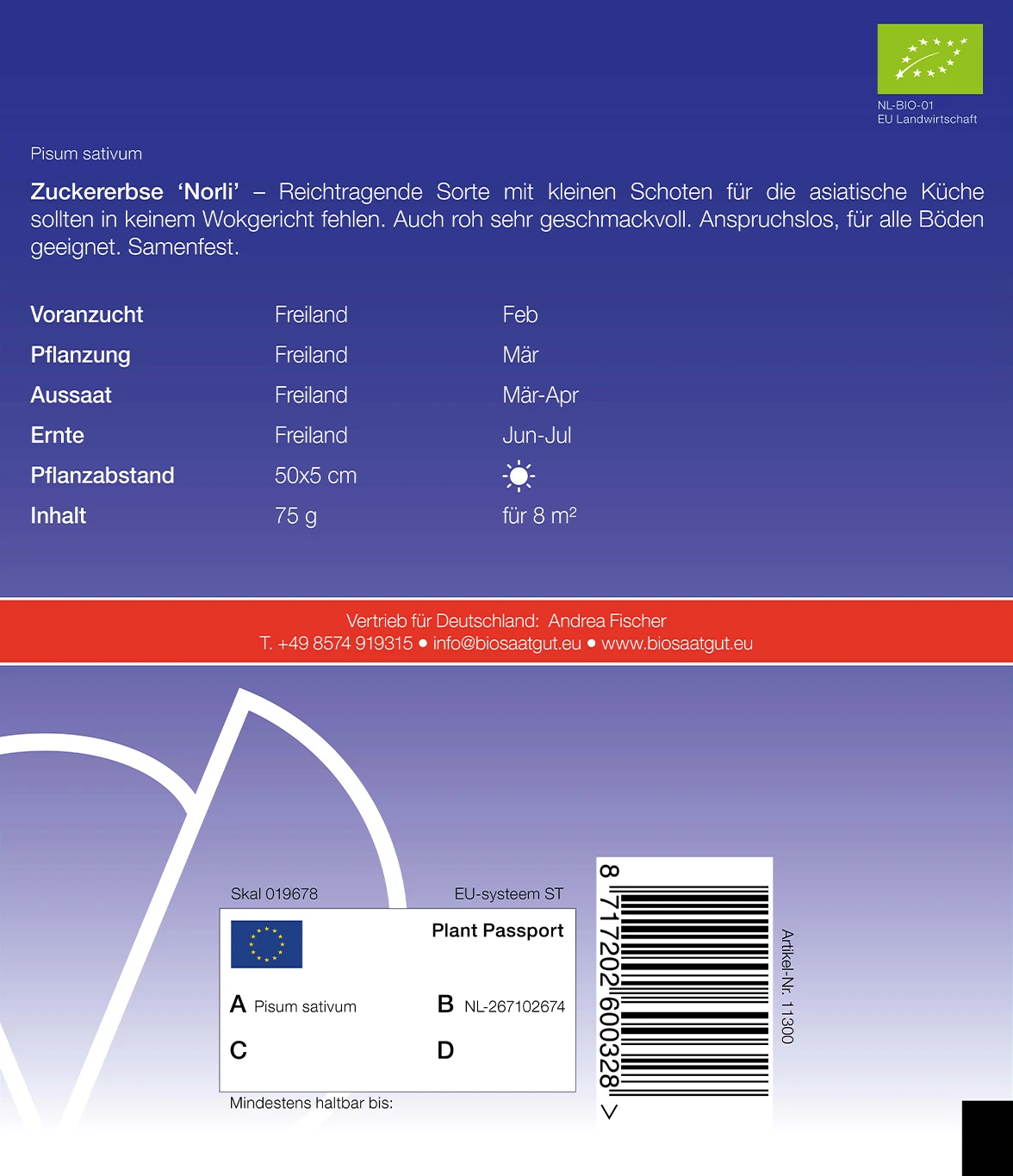 Reichtragende Sorte mit kleinen Schoten für die asiatische Küche. Sollten in keinem Wokgericht fehlen. Auch roh sehr geschmackvoll, Anspruchslos, für alle Böden geeignet. Samenfest.